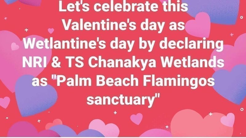 Let's celebrate this Valentine's day as Wetlantine's day by declaring NRI & TS Chanakya Wetlands as "Palm Beach Flamingos sanctuary". The members are invited to create attractive Logo for "Palm Beach Flamingos sanctuary". The best Logo will be used as Logo for the Sanctuary.