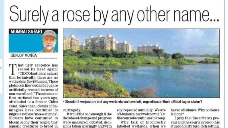 Your attention is invited to a recent news appearing in Hindustan Times which says "Cidco opposes bid to declare Navi Mumbai flamingo havens as conservation reserves" - Hindustan Times - https://www.hindustantimes.com/india-news/cidco-opposes-bid-to-declare-navi-mumbai-flamingo-havens-as-conservation-reserves/story-ThGrWHgNGmbunUXD2x9Y7L.html
