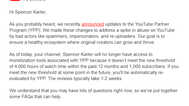 As you may know about the unfair YPP aka Partner Program Changes, I've got the dreadful e-mail from TPTB at YouTube, other Small YouTubers have the same e-mail as well. Susan Wojcicki has took away Monetization Rights from Small YouTubers which is injustice and oppression. YouTube has created a PR Nightmare....Public Relations Nightmare!