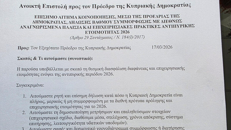 Στείλαμε την επιστολή. Την παρέλαβαν. Τώρα η Κύπρος περιμένει απαντήσεις για την πρόληψη.