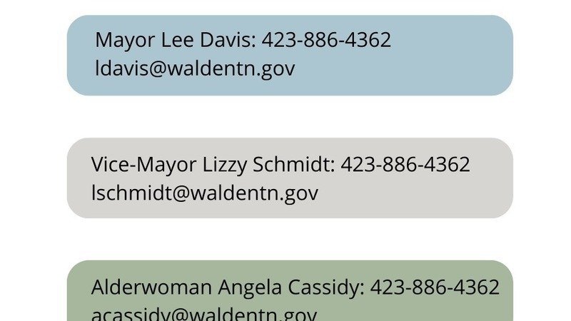 Vice-Mayor Lizzy Schmidt: lschmidt@waldentn.gov