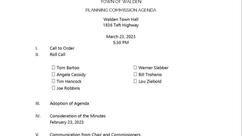 The March Walden Planning Commission meeting, set for Thursday, March 23 at 5:30 p.m. at Town Hall, will consider the proposal by its planning consultant to adopt a new TC-1 zoning district that would be applied to the land for the Walden View project. The TC-1 zone will dictate the permitted footprint of Walden View. While the meeting is not specifically about the Walden View development, if the TC-1 zone that the Planning Commission adopts includes an arbitrary cap on the size of the grocery store of anything less than 30,000 square feet in building size, then the Walden View development could not proceed.