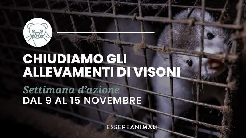 Essere Animali ha lanciato dal 9 al 15 novembre 2020 una Settimana d’azione diretta al Governo per chiedere subito che anche in Italia sia introdotto un divieto di allevamento di visoni e di altri animali da pelliccia.