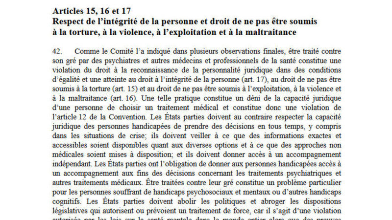 Image: ONU CDPH, Observations générales N°1, 2014, réf: CRPD/C/GC/1