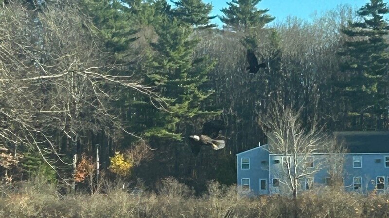 Attached here I have is a picture of a bald eagle I caught this guy flying in my yard and I believe it just displays the level of freedom that is shown in are area and I believe it should be a right to have chickens for free.