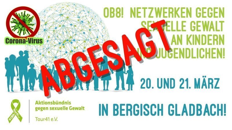 Am 20. und 21. März 2020 lädt der Tour41 e.V. - Aktionsbündnis gegen sexuelle Gewalt - jeweils von 10:00 Uhr bis 16:00 Uhr zum Netzwerken, Informieren, Austauschen und Kennenlernen in die Fußgängerzone nach 51465 Bergisch Gladbach; Hauptstraße 131 ein.