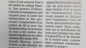 Petition updateEmpêcher l'implantation d'antennes relais Free Mobile à 60 m du collège Tabarly à La BauleNous continuons dans la presse!!!