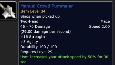 Although I'm a Feral Druid, I'm not here to discuss just my spec. I could be diplomatic and demand that the drop-rate of the Manual Crowd Pummeler be 100%, in order to replicate the rate at which I collected pummelers before this change was implemented. But I will not do that. This goes for all of us. I speak too for the mages selling boosts or farming ZF/Mara, for the hunters farming Tribute runs, for the pre-bis casters looking for Jed over in Blackrock Spire, even for the DME jump runners who cannot find a better path to riches. That Feral who only farms Gnomer over two lockouts a day likely has alts too: Should they abandon leveling in SM? All of us will suffer here, in World of Warcraft Classic, with oppression at the hands Blizzard, with the economic exploitation of our wallets over the broken promises #NoChanges.