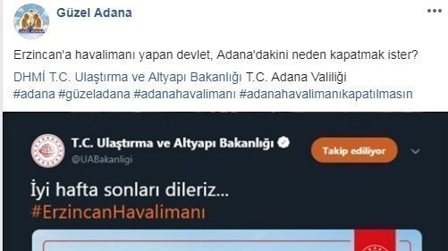 Aggiornamento sulla petizioneAdana Havalimanı KapatılmasınSoruyoruz; Erzincan'a havalimanı yapan devlet, Adana'dakini neden kapatmak ister?