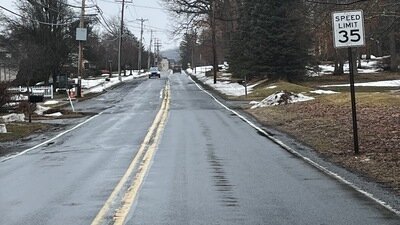 There are NO businesses on this road, only residential homes, most of which face the road, with some homes’ backyards facing. Unfortunately, the speed limit starts at 45 mph near the Bushkill Drive entrance onto Zucksville Road. Eventually, after a few warning signs (a drop in speed limit) for curves in the road, the speed limit then changes to 35 mph, but this limit is limitless.