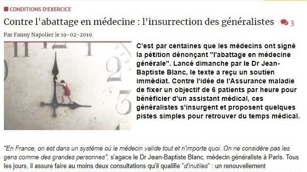 Plusieurs journaux médicaux se sont fait le relais de notre tribune comme le JIM ou EGORA. A paraître un article dans Paris Match web cette semaine.