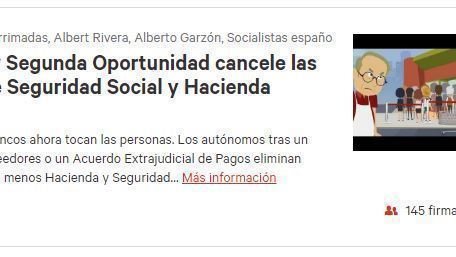 Petition updateQue la Ley Segunda Oportunidad cancele las Deudas de Seguridad Social y Hacienda también.En un día hemos alcanzado las 150 firmas