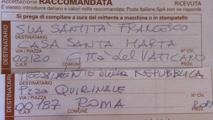 - in data 22.06.16 ho ricevuto la ricevuta di ritorno delle raccomandate inviate sia al Presidente della Repubblica che a Papa Francesco