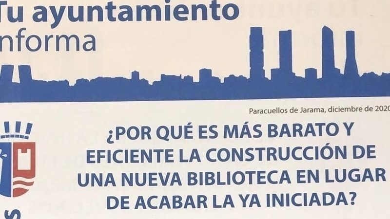 El Ayuntamiento ha buzoneado, CON DINERO DE TODOS SUS VECINOS *, un folleto para justificar por qué es mejor hacer la biblioteca nueva que acabar la antigua.