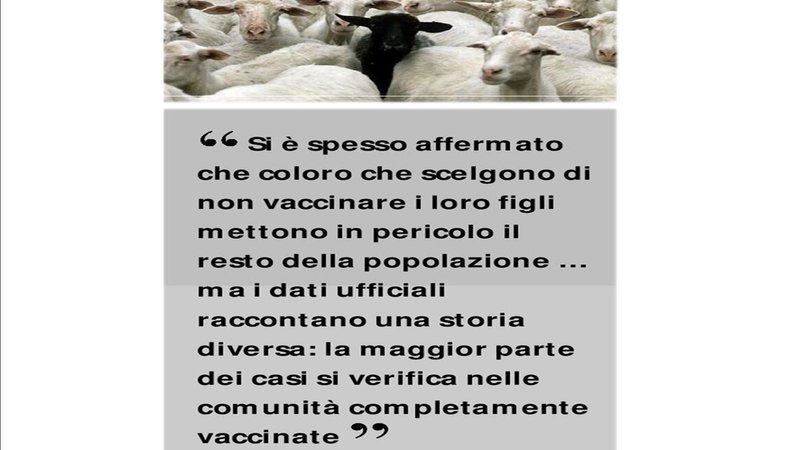 L'OMS (NdR: che e' foraggiata da Big Pharma...) ha richiamato l'Italia perché ci sarebbe stato un "crollo" nelle vaccinazioni di morbillo e rosolia, preoccupata del fatto che non si sarebbe raggiunta la cosiddetta immunità di branco (herd immunity). Ma il cosiddetto effetto gregge nelle vaccinazioni è stato di fatto smentito in California, dove 4 bambini hanno contratto la pertosse nonostante fossero stati vaccinati contro la malattia ed il 99,5% degli studenti fosse stato sottoposto al vaccino DTPa.