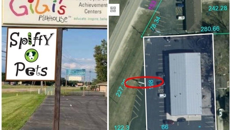 The Village of Machesney Park has notified Spiffy Pets that the sign on the pole doesn't meet their current newest zoning regulations and needs to be removed or that Spiffy Pets asks for a variance for it to remain in place. There is no other location on the property that this sign could be located because the property is literally all building and parking lot (property lines seen in the picture).