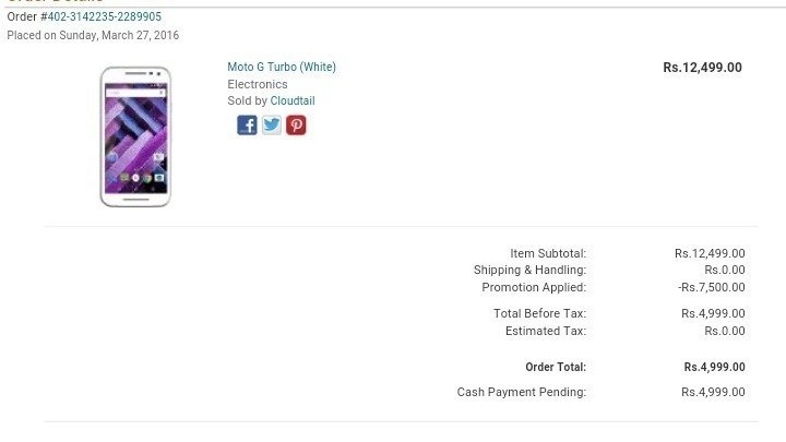 After getting a promotional code over internet I ordered moto g turbo for 4999!!!