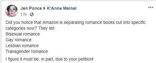 Petition updateSeparate Lesbian and Gay Fiction into completely different categoriesSo, this happened on Facebook today