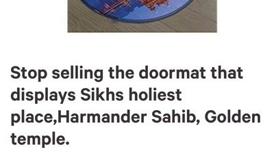 This item is a doormat that displays a picture of the golden temple which is the holiest pilgrimage for the followers of Sikh religion. Having this picture on a doormat for people to rub their feet on is a disrespect to our religion and hurts our religious sentiments.