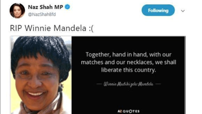 - Labour’s Naz Shah marked the death of Winnie Mandela with an ‘inspirational’ quote from the South African activist endorsing the brutal ‘necklacing’ murders of the ’80s and ’90s.
