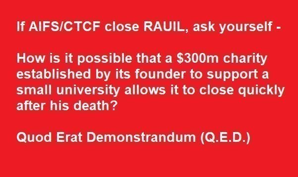 AVOID CLOSURE OF CTCF/AIFS/RAUIL BY RELEASING IMMEDIATE FUNDING.