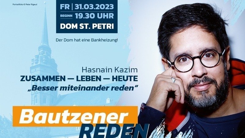 wir, die Initiative "Bautzen gemeinsam" laden Sie zu den neuen "Bautzener Reden" am Freitag, dem 31. März 2023 um 19.30 Uhr in den beheizten Dom St. Petri in Bautzen ein. Zu Gast ist der Journalist und Bestseller-Autor Hasnain Kazim. Er wird zum Thema „Besser miteinander reden“ sprechen.