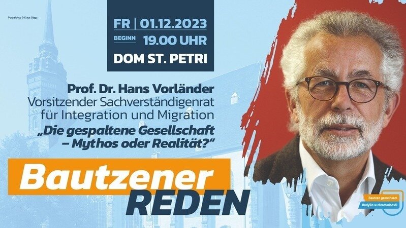 wir, die Initiative "Bautzen gemeinsam" laden Sie zu den neuen "Bautzener Reden" am Freitag, dem 1. Dezember 2023 um 19.00 Uhr in den Dom St. Petri in Bautzen ein. Zu Gast ist der Dresdener Politikwissenschaftler Prof. Hans Vorländer. Er wird zum Thema „Gespaltene Gesellschaft - Mythos oder Realität“ sprechen.