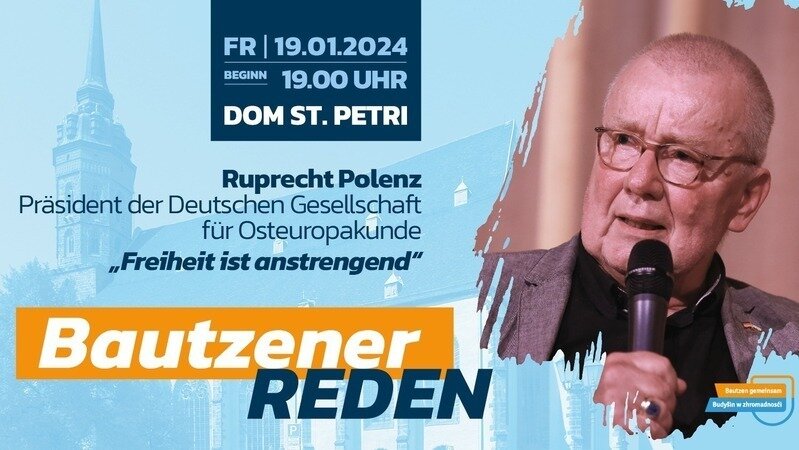 wir, die Initiative "Bautzen gemeinsam" laden Sie zu den neuen "Bautzener Reden" am Freitag, dem 19. Januar 2024 um 19.00 Uhr in den Dom St. Petri in Bautzen ein. Zu Gast ist einer der ältesten Politik-Influencer Deutschlands, Herrn Ruprecht Polenz. Er wird zum Thema „Freiheit ist anstrengend“ sprechen.
