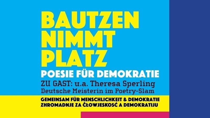 Bereits zum dritten Mal ruft ein Bündnis aus Vereinen, Gewerkschaften, Initiativen, Institutionen und Sozialverbände zu einer Veranstaltung für Toleranz und Menschlichkeit auf. Von 15 bis 17 Uhr treten unter dem Motto „Poesie für Demokratie“ Sprach-Künstler auf. So legt Theresa Sperling, die Deutsche Meisterin im Poetry Slam aus Nordhorn wie auch der Leipziger Dichter Yannik Sellmann einen sprachgewaltigen Zwischenstopp in Bautzen ein. Veranstalter ist das tvBUNT-Netzwerk.