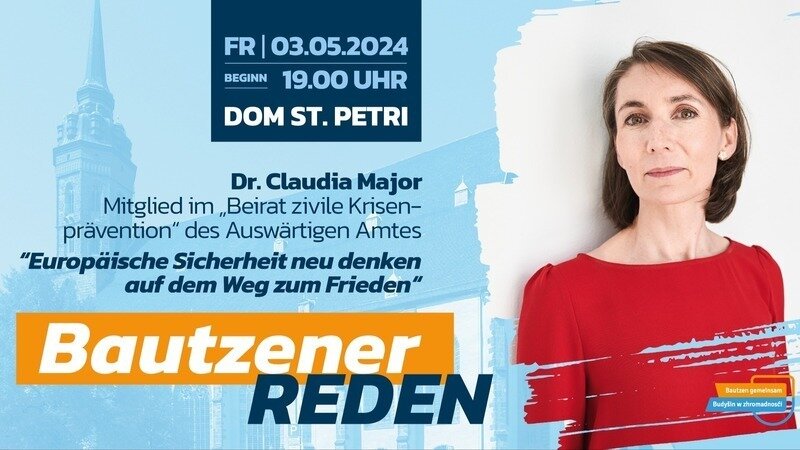 Tiefgreifende geo-politische Veränderungen, neue Formen von Konflikten und Kriegsführung, Instrumentalisierung wirtschaftlicher Abhängigkeiten, Instabilität in Europas Nachbarschaft: Vor diesem Hintergrund muss Europa seine Sicherheitsordnung umgestalten. „Europäische Sicherheit neu denken auf dem Weg zum Frieden“ – hat deshalb Sicherheitsexpertin Claudia Major die 16. Bautzener Rede überschrieben. Auf Einladung der Gruppe „Bautzen gemeinsam“ beleuchtet sie am Freitag, dem 3. Mai, 19.00 Uhr im Dom St. Petri zentrale Fragen einer zukünftigen europäischen Sicherheitsordnung.