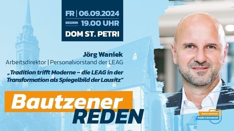 Über diese Vision spricht Jörg Waniek, Arbeitsdirektor und Personalvorstand der LEAG, bei der Bautzener Rede am 6. September im Dom S. Petri in Bautzen. Um 19 Uhr heißt es „Tradition trifft Moderne – die LEAG in der Transformation als Spiegelbild der Lausitz“. Mit dem Gesprächsformat meldet sich die Veranstaltungsreihe der unabhängigen Initiative „Bautzen gemeinsam“ aus der Sommerpause zurück.
