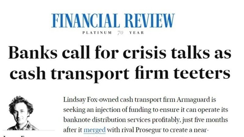 Australia's cash system is in crisis with the dominant cash company - Armaguard - telling banks it needs immediate and ongoing financial support to continue operating.