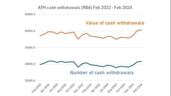 The Reserve Bank of Australia yesterday reported that ATM cash withdrawals continue to rise.