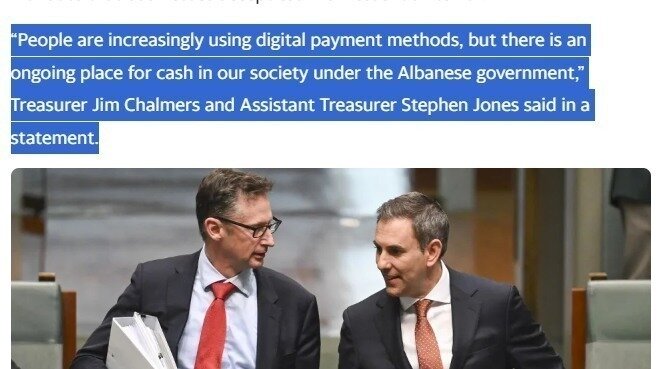Treasurer Jim Chalmers has just announced new plans to require all businesses in Australia selling food, fuel, medicine and health care supplies to accept cash for payment.