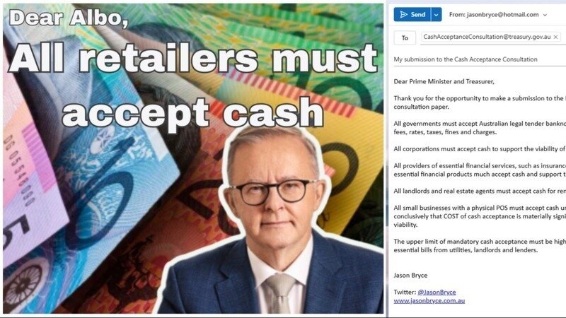 Send an email today about how you want all businesses to be required to accept cash to Prime Minister Anthony Albanese: