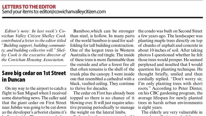 Petition updatePlease - Save the huge iconic Red Cedar - 1st Street Duncan BCCowichan Valley Citizen article