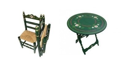 Las sillas andaluzas plegables cumplen con los estándares de las típicas sillas sevillanas de feria con asiento tapizado en enea y decoradas a mano, innovando gracias a la posibilidad de plegado de las mismas. Muy propias de ferias y patios, las sillas andaluzas plegables están disponibles en varios acabados: color verde, rojo y azul.