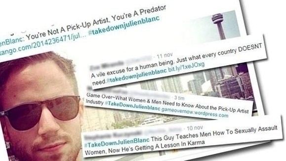 Julien Blanc forherliger seksuell vold mot kvinner og kaller det for sjekketeknikk. Han reiser verden over og tjener penger på seminarer hvor han foreleser om hvordan man kan lure kvinner til sex, og er kjent for Twitter-utsagn som "Man, I will teach you how to "shatter" her lack of consent. Pay me and rape them all."