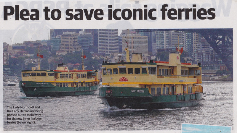 The new ferry "Fred Hollows" broke down this week and now is out of service to be fixed. Also there have been people left on the wharves because they can't fit on the ferries . The Lady Class have been running beautifully for years and have capacity of 500-700 people. Keep them on. The Lady Northcott has just had about $500,000 spent on her and is in top shape sitting at Balmain. Why? Please ask to put her back on the harbour by writing to anyone you can.