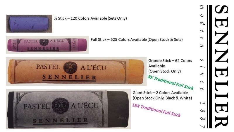 Pastel lovers, did you know that Sennelier soft pastels come in four sizes?! Half stick, full stick, Grande and GIANT. The first three are readily available stateside; however, GIANT, (aka JUMBO), Sennelier pastels in a range of COLORS are ONLY available in the Sennelier store in Paris. (Black and white are the only colors currently available here). Imagine what you could create with GIANT colored Sennelier pastels! I think Jimmy Wright explains it very well in the attached video: https://www.youtube.com/watch?time_continue=78&v=gu4zdOhbKaI