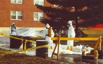 In 1991, seven transformers exploded on the SUNY New Paltz campus, causing PCB and Dioxin contaminated water to flow through Bliss, Capen, Gage, and Scudder Residence Halls, Parker Theater, and Coykendall Science Building. The cleanup required men in Level B protection hazmat suits (including air tanks) and infiltrated every porous surface in the buildings as well as the air vents and possibly the water supply in Coykendall Science Building (the water was never tested before allowing classes to resume). While the school, county, and state officials claimed the buildings were habitable, many gradute students developed various forms of cancer and experienced miscarriages after being placed back in the dorms.