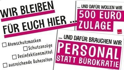 - Eine Erschwerniszulage von 500 € monatlich für alle Beschäftigten, die durch die aktuelle Situation noch höher belastet sind