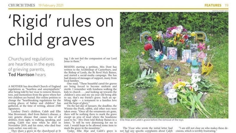 Actualización de la peticiónChange the heartbreaking regulations for the resting places of Babies and Children.Our story featured in the Church Times