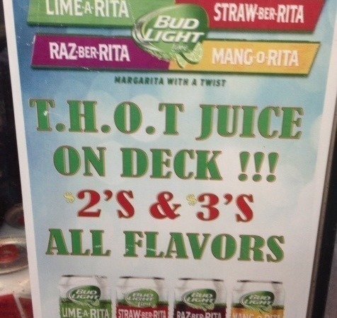 The urban dictionary defines the word T.H.O.T as meaning THAT HOE OVER THERE! This urban slang, according to the urban dictionary, originated from Chicago and made popular by rapper Chief Keef. Bud Light Lime's current marketing and advertising campaign is attempting to appeal to urban communities by branding their new alcoholic beverage as T.H.O.T JUICE, with flavors in Lime-A-Rita, Straw-BER-Rita, etc.