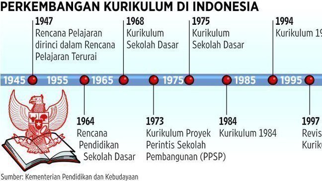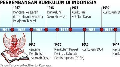 Sejarah kurikulum di Indonesia sejak kemerdekaannya pada tahun 1945 hingga saat ini diwarnai oleh 10 kali perubahan kurikulum, yaitu kurikulum 1947, kurikulum 1952, kurikulum 1964, kurikulum 1968, kurikulum 1975, kurikulum 1984 (CBSA), kurikulum 1994, kurikulum 2004 (KBK), kurikulum 2006 (KTSP), kurikulum 2013. Jika dihitung reratanya maka setiap 6,5 tahun terjadi perubahan kurikulum.