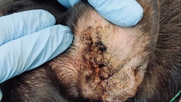 When our investigators found her, she was in a pitiful state – ears inflamed, ulcers, skin condition, eye infections, heart murmurs, tumors, dental trouble – you name it. Poor girl was suffering big time.