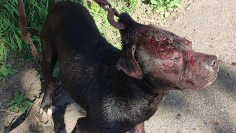 But someone did help him — eventually. A small local rescue team found him barely alive, his head swollen and matted with blood and infection. They acted quickly. They cut the chain. They took him straight to the vet. Honestly... they saved his life.