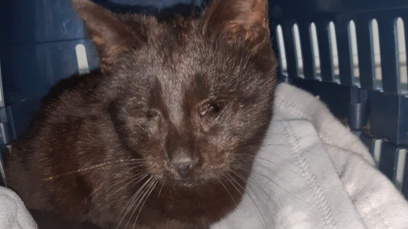 A tiny black kitten — just a baby — was found crying in the middle of the street in Romania.