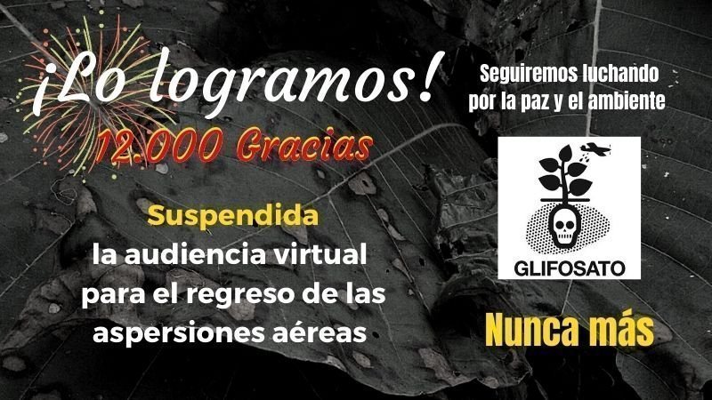 Este 26 de agosto, la Autoridad Nacional de Licencias Ambientales -ANLA-, suspendió la convocatoria a la audiencia virtual programada para el 1 de septiembre, como requisito para el regreso de las aspersiones con Glifosato. Sin duda, es un triunfo para el campesinado, el medio ambiente y la paz. Por ahora, no vuelve el Glifosato.