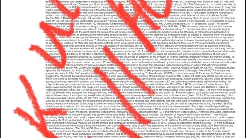 The US government is WELL aware that MK-ULTRA was NEVER dismantled and that some of us US Americas as myself are under their programs, research under Jewish/Zionists organizations and scientists, and are FUNDING this despicable WORK